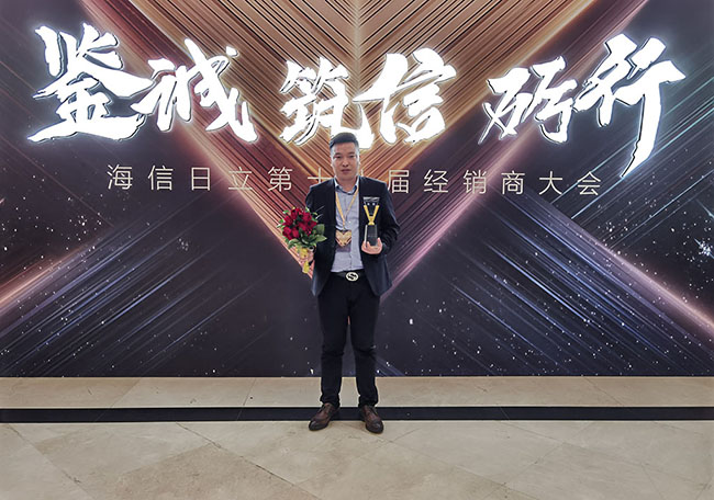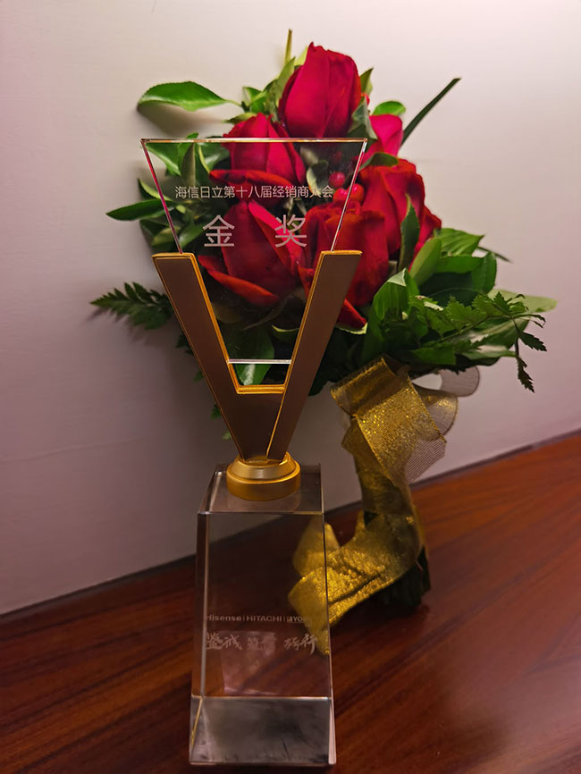 问鼎体育(官方)在线官网荣获海信日立第十八届经销商大会金奖,我司代表杜世风总经理参与了大会颁奖并发表了贺词——祝问鼎体育(官方)在线官网公司业绩蒸蒸日上。